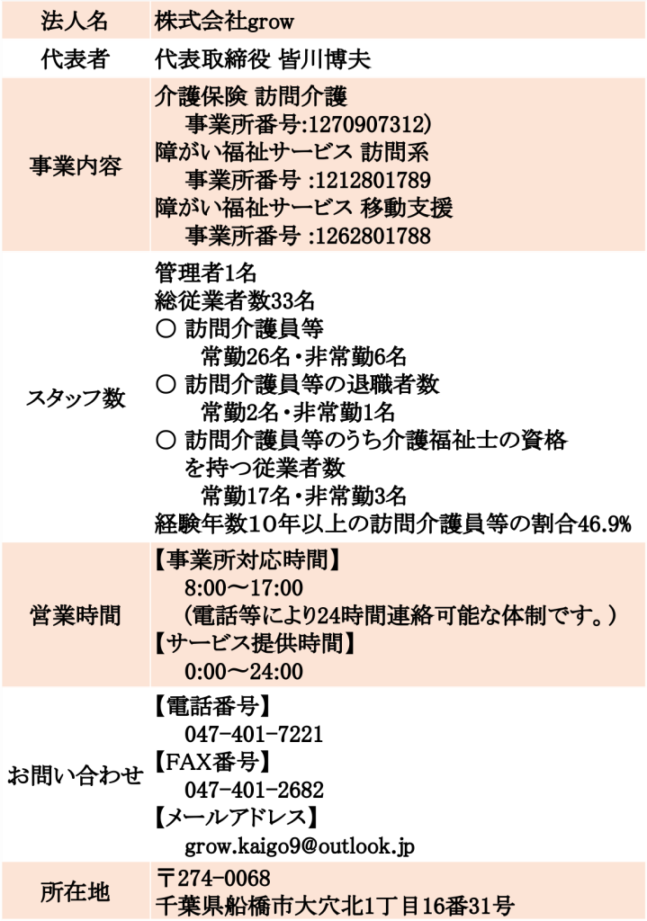 成長し続け、ご利用者様の安心と満足を第一に考えた支援・ケアを提供する。